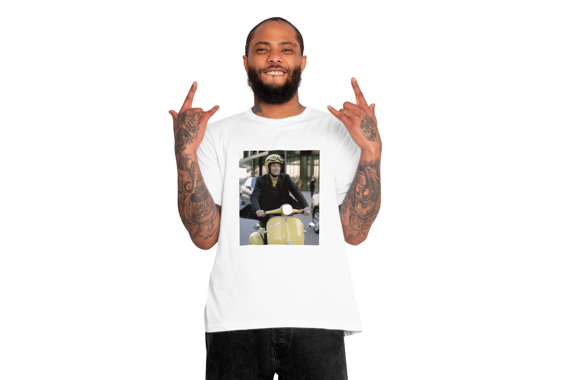 Íconos como Paul Newman, Brad Pitt o Audrey Hepburn en Vespa vuelven a vivir en camisetas que huelen a cine, libertad y estilo sin fecha de caducidad 🛵🎬