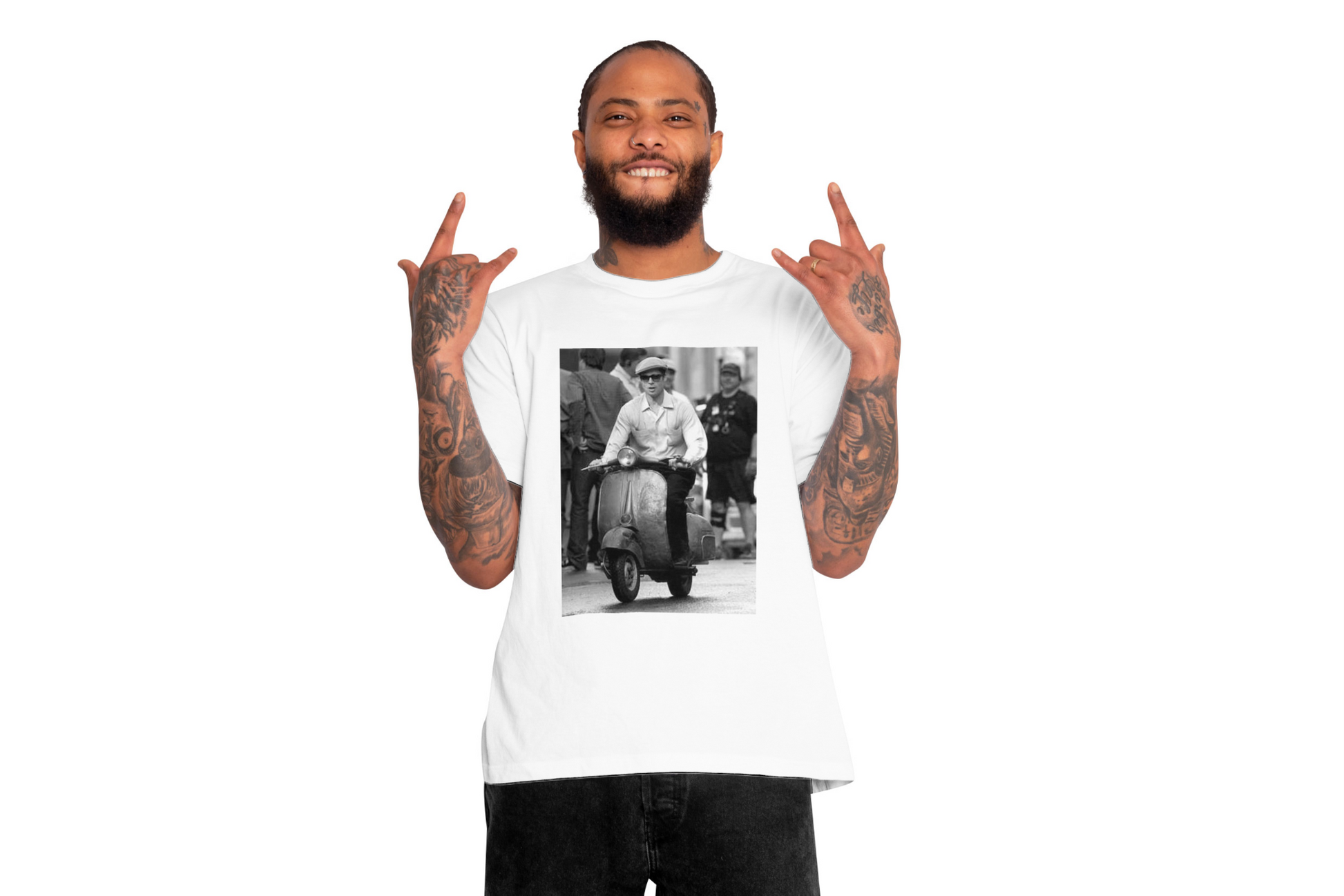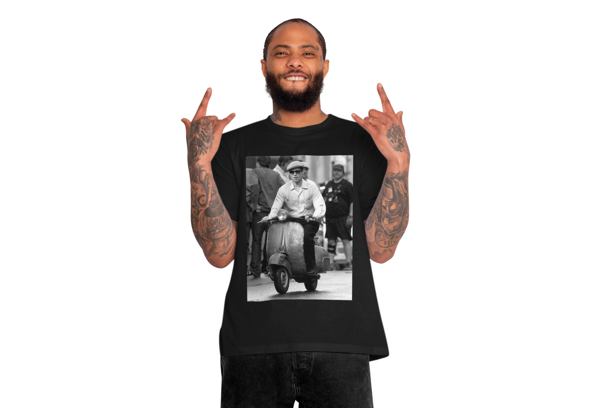 Íconos como Paul Newman, Brad Pitt o Audrey Hepburn en Vespa vuelven a vivir en camisetas que huelen a cine, libertad y estilo sin fecha de caducidad 🛵🎬