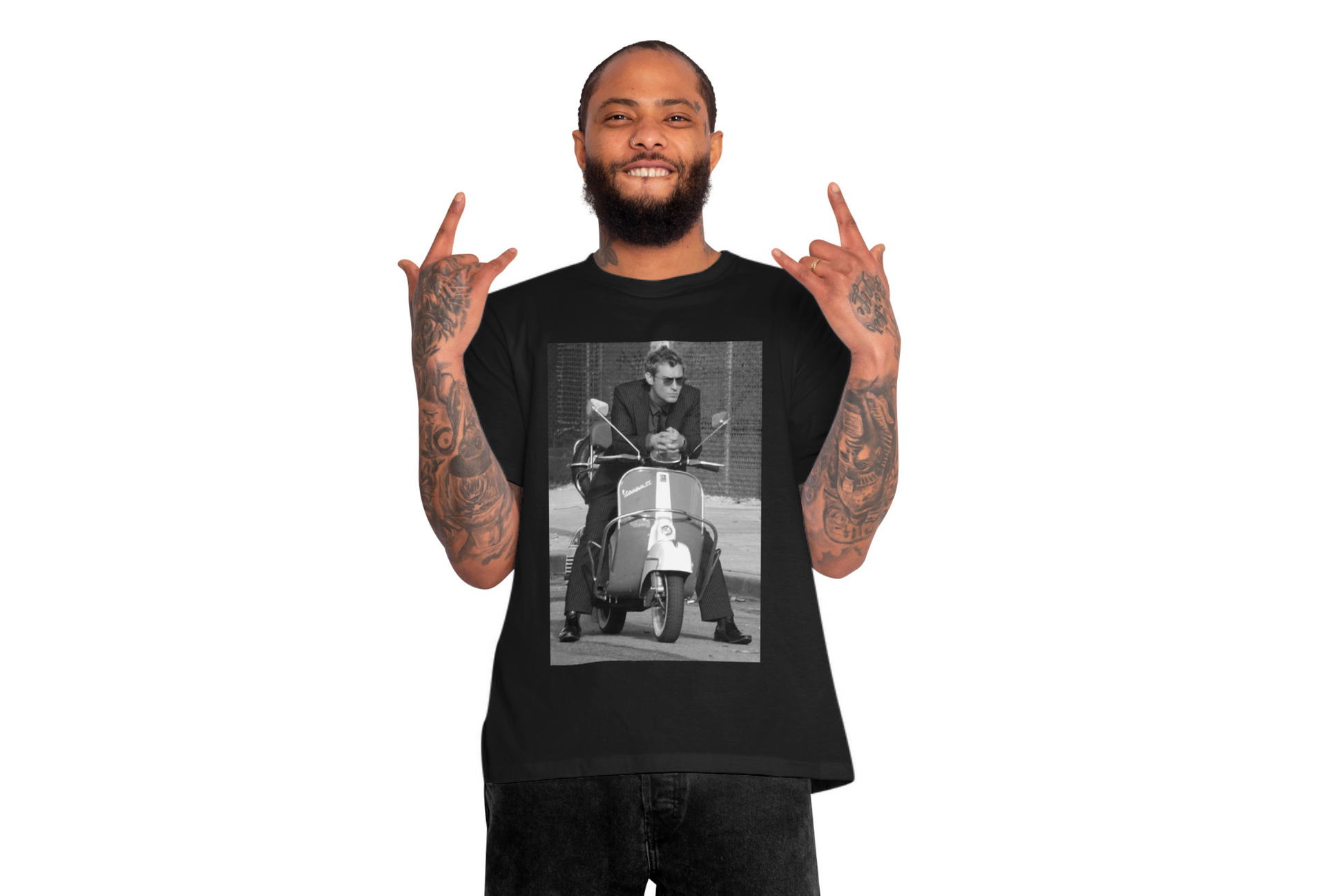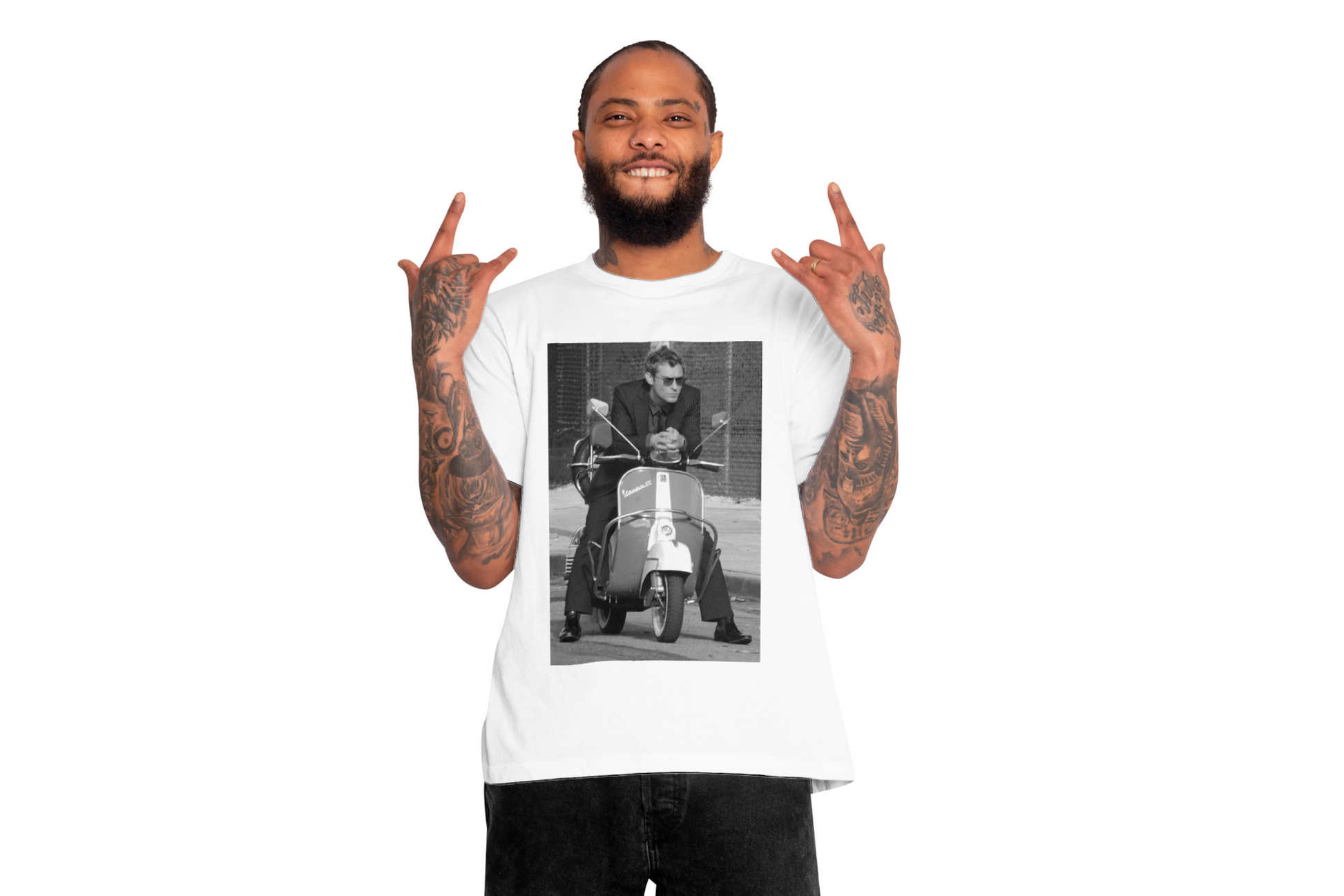 Íconos como Paul Newman, Brad Pitt o Audrey Hepburn en Vespa vuelven a vivir en camisetas que huelen a cine, libertad y estilo sin fecha de caducidad 🛵🎬