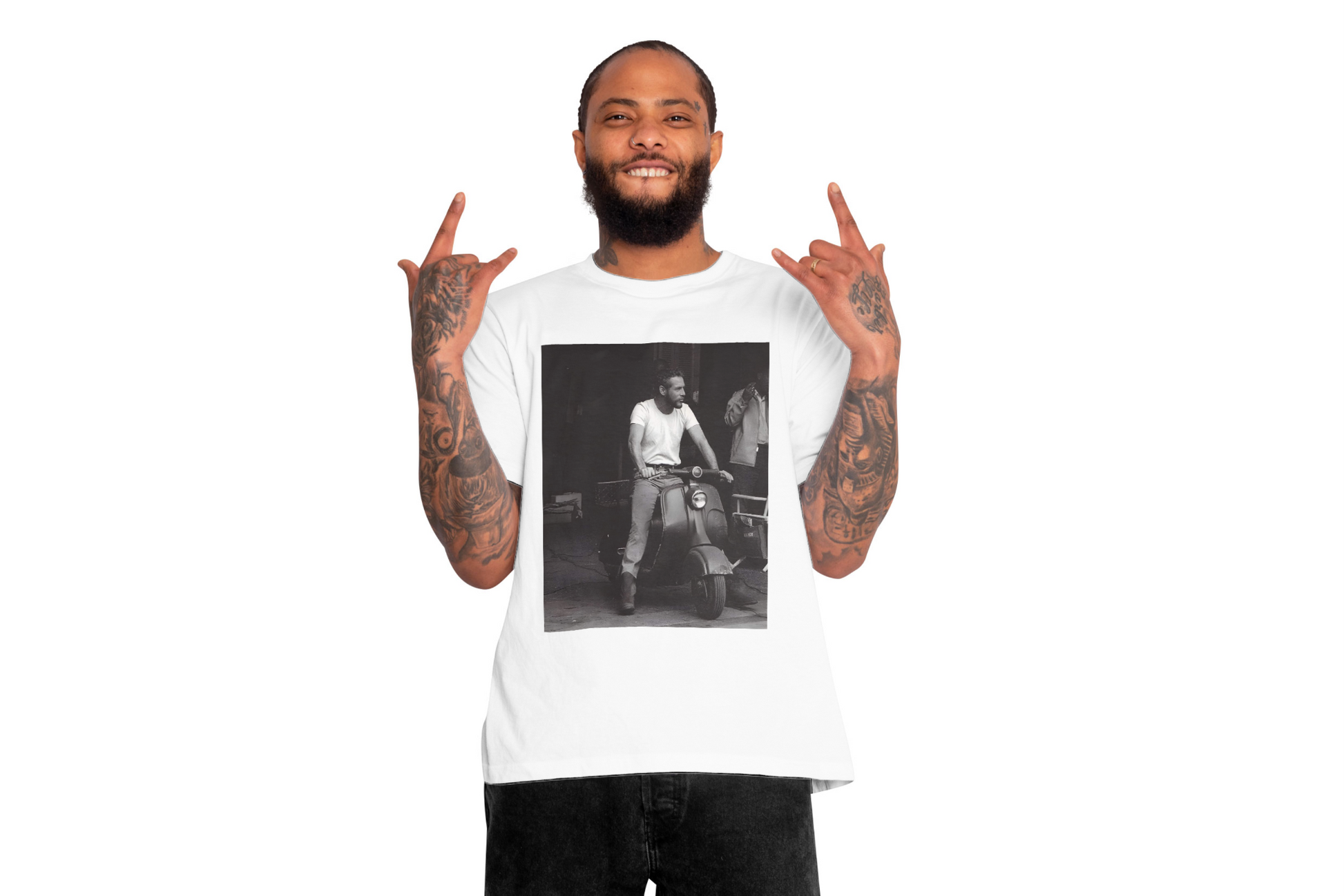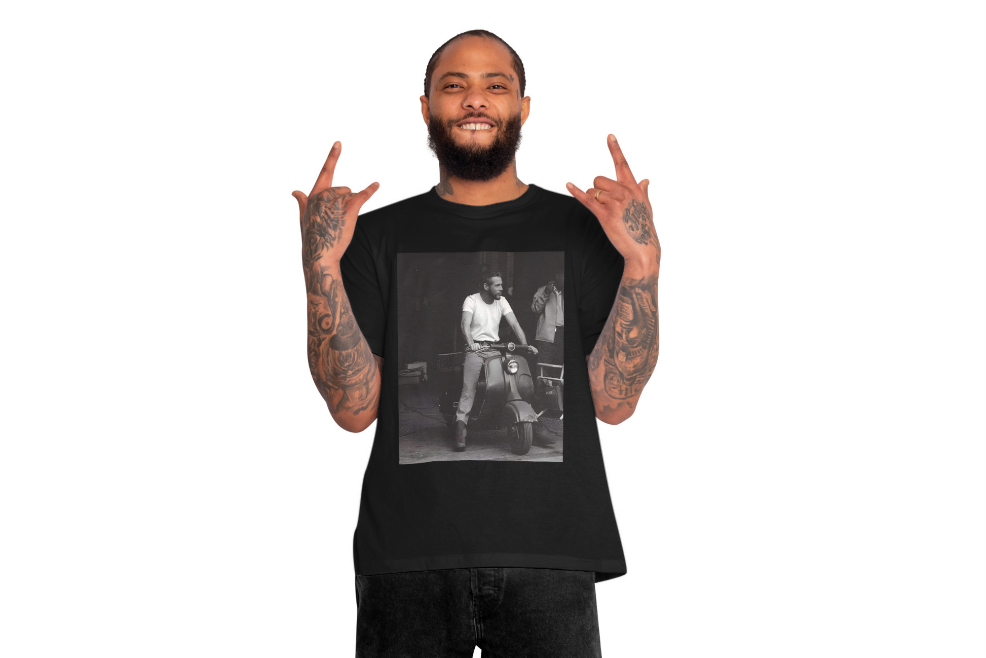 Íconos como Paul Newman, Brad Pitt o Audrey Hepburn en Vespa vuelven a vivir en camisetas que huelen a cine, libertad y estilo sin fecha de caducidad 🛵🎬