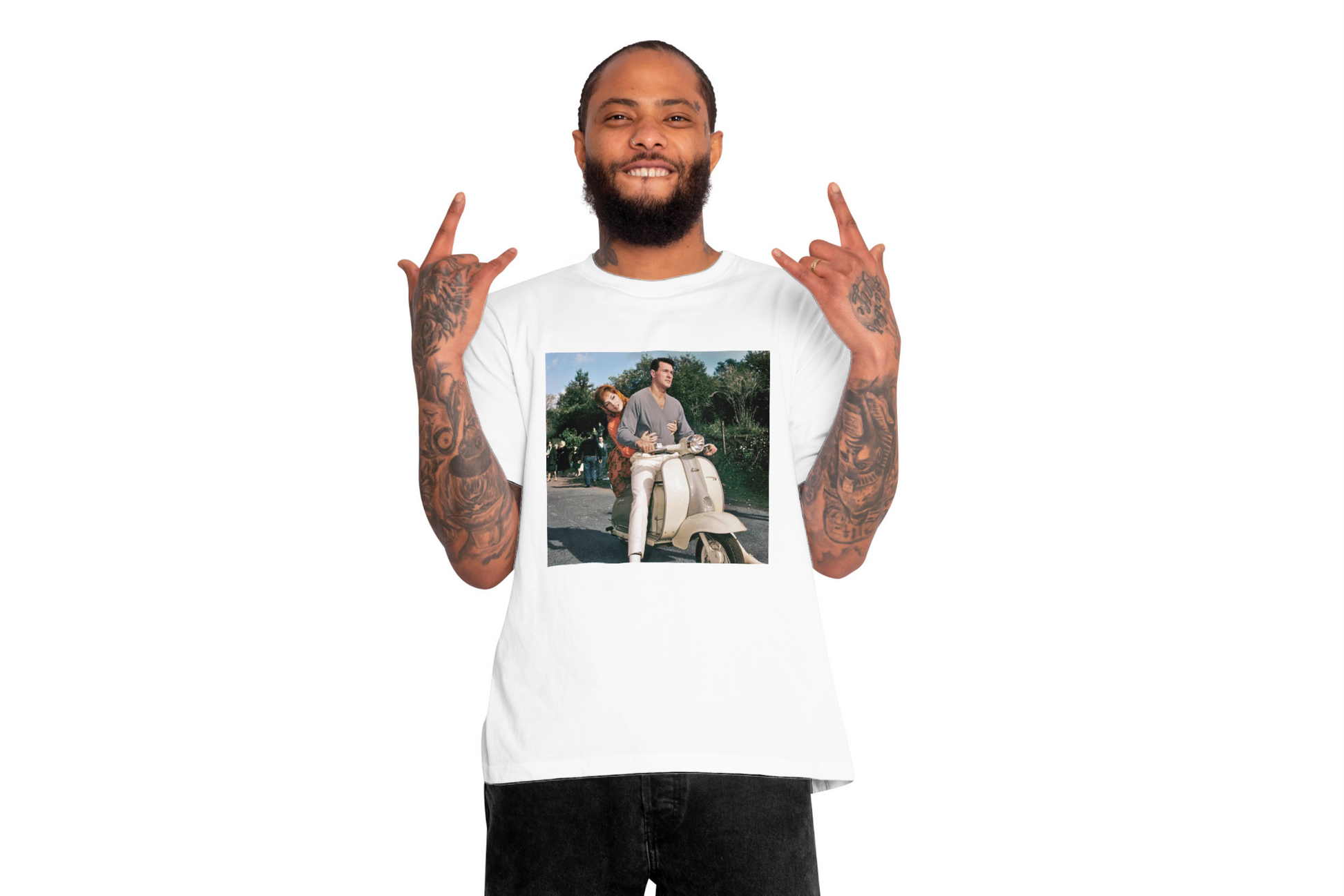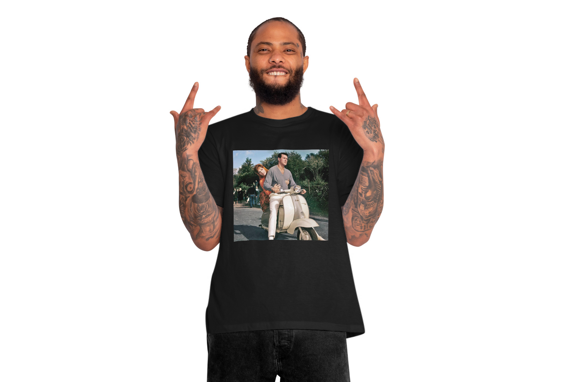 Íconos como Paul Newman, Brad Pitt o Audrey Hepburn en Vespa vuelven a vivir en camisetas que huelen a cine, libertad y estilo sin fecha de caducidad 🛵🎬