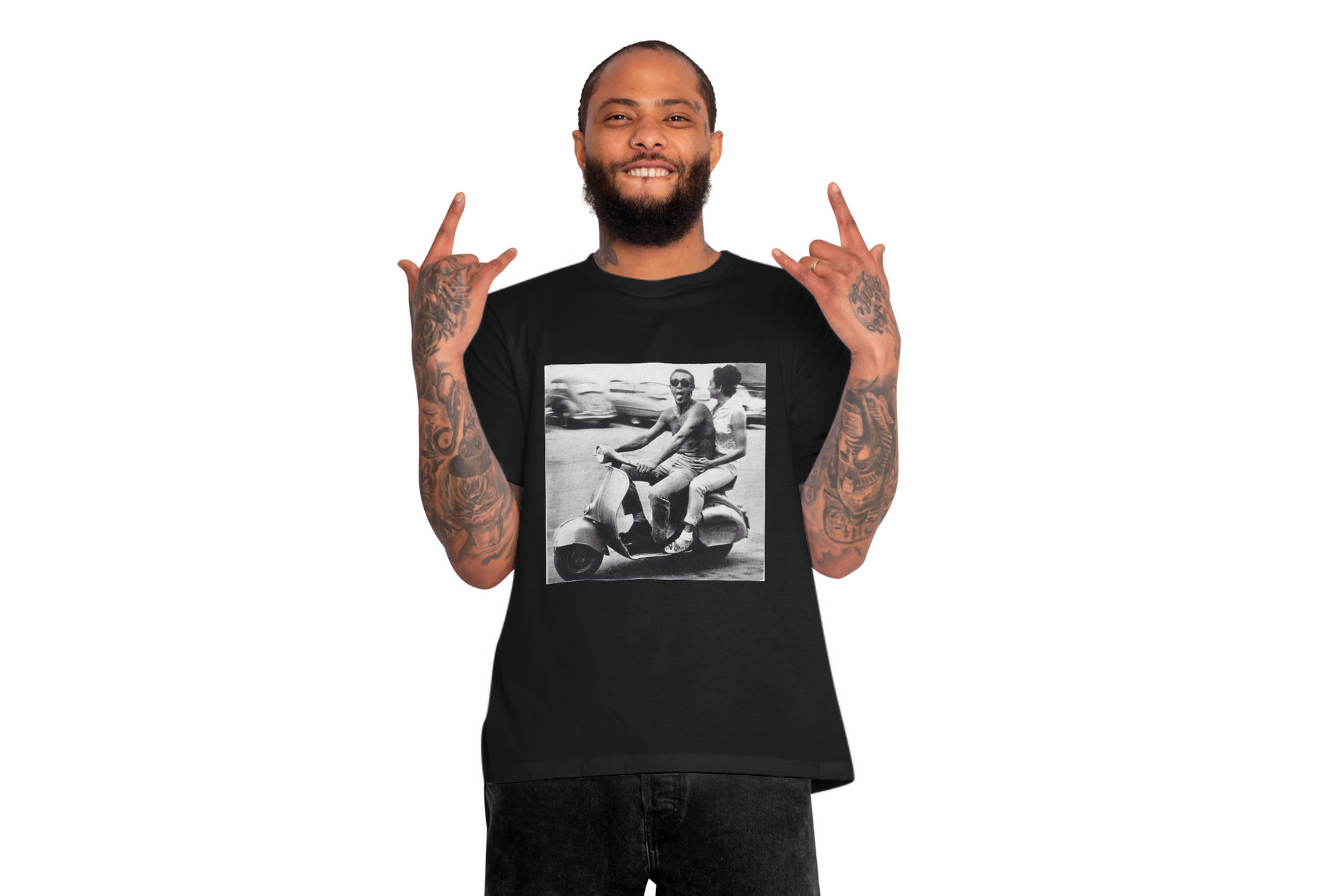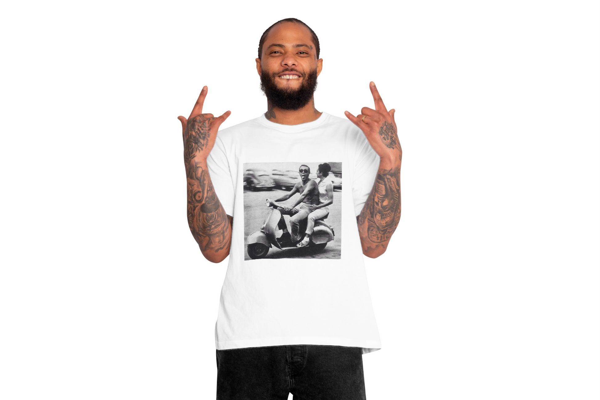 Íconos como Paul Newman, Brad Pitt o Audrey Hepburn en Vespa vuelven a vivir en camisetas que huelen a cine, libertad y estilo sin fecha de caducidad 🛵🎬